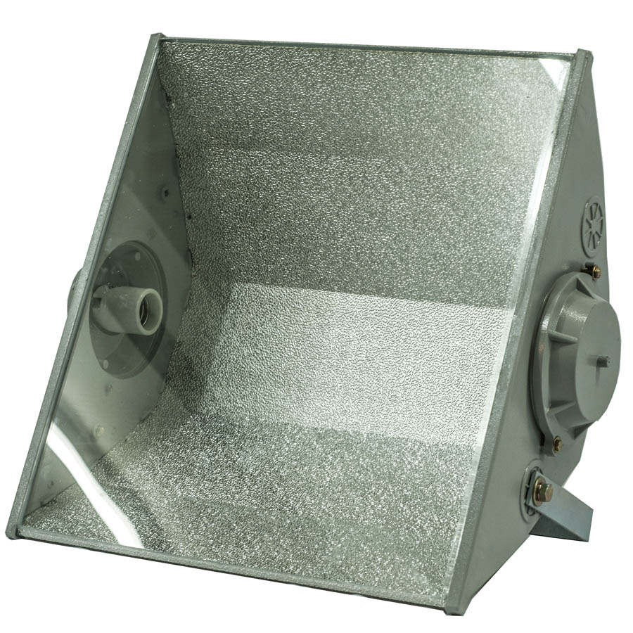 – Projetor fechado, com o corpo refletor repuxado em chapa de alumínio e anodizado.